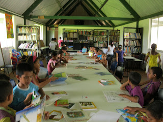 Son las dos y cuarto, ya se han reunido alrededor de unos treinta niños, la biblioteca semeja una colmena llena de actividad, los trabajadores del lavadero de autos que queda en frente, miran embelesados a los niños, uno de ellos se acerca y pregunta: ¿De que andan hoy?. Una pequeña de escasos nueve años contesta con orgullo: ¡Vamos a leerle a la gente!